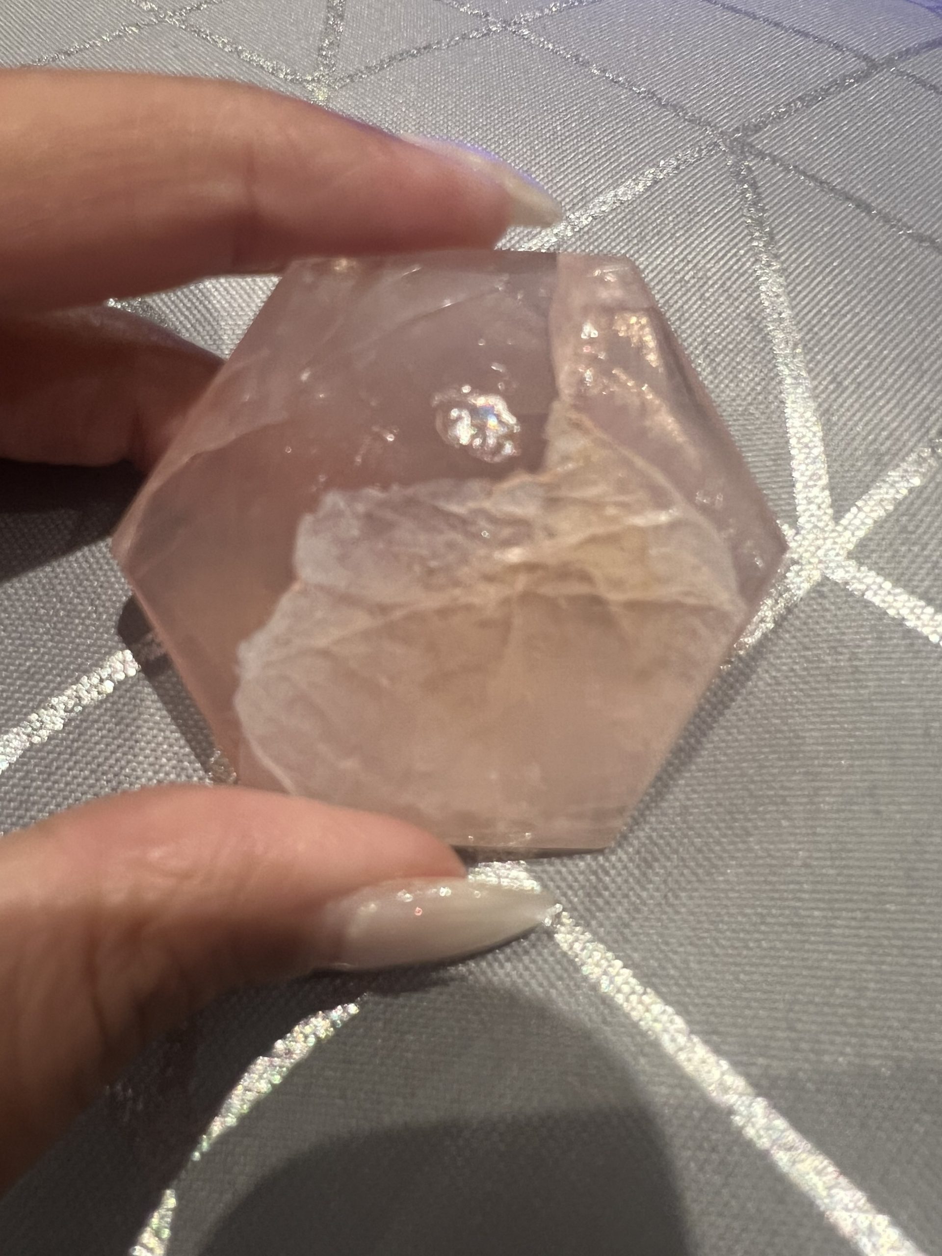 Invite gentle, nurturing energy into your space with this beautifully crafted natural Rose Quartz hexagon.